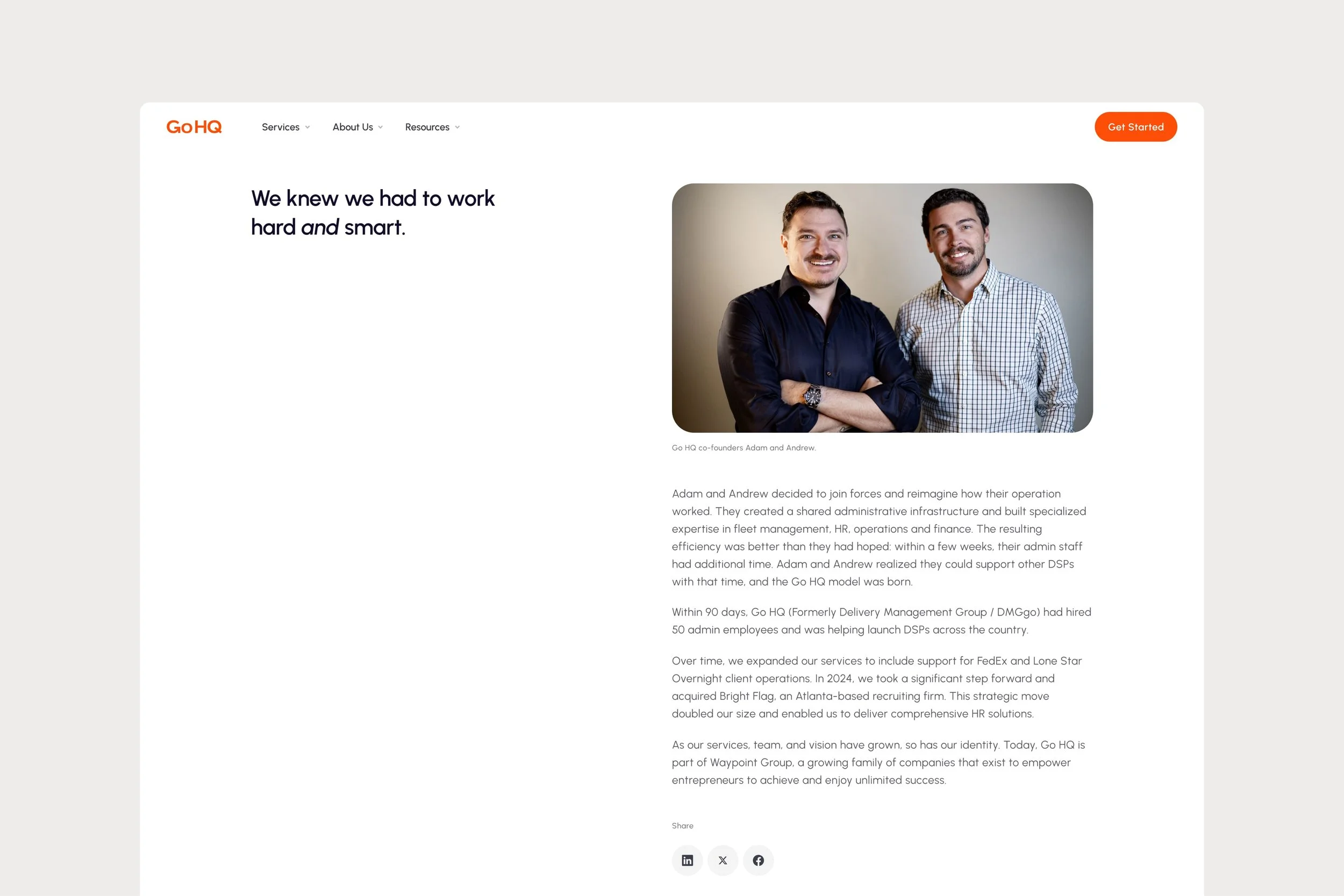 Go HQ is a logistics and operations platform that supports transportation businesses through finance, HR, and operational services.