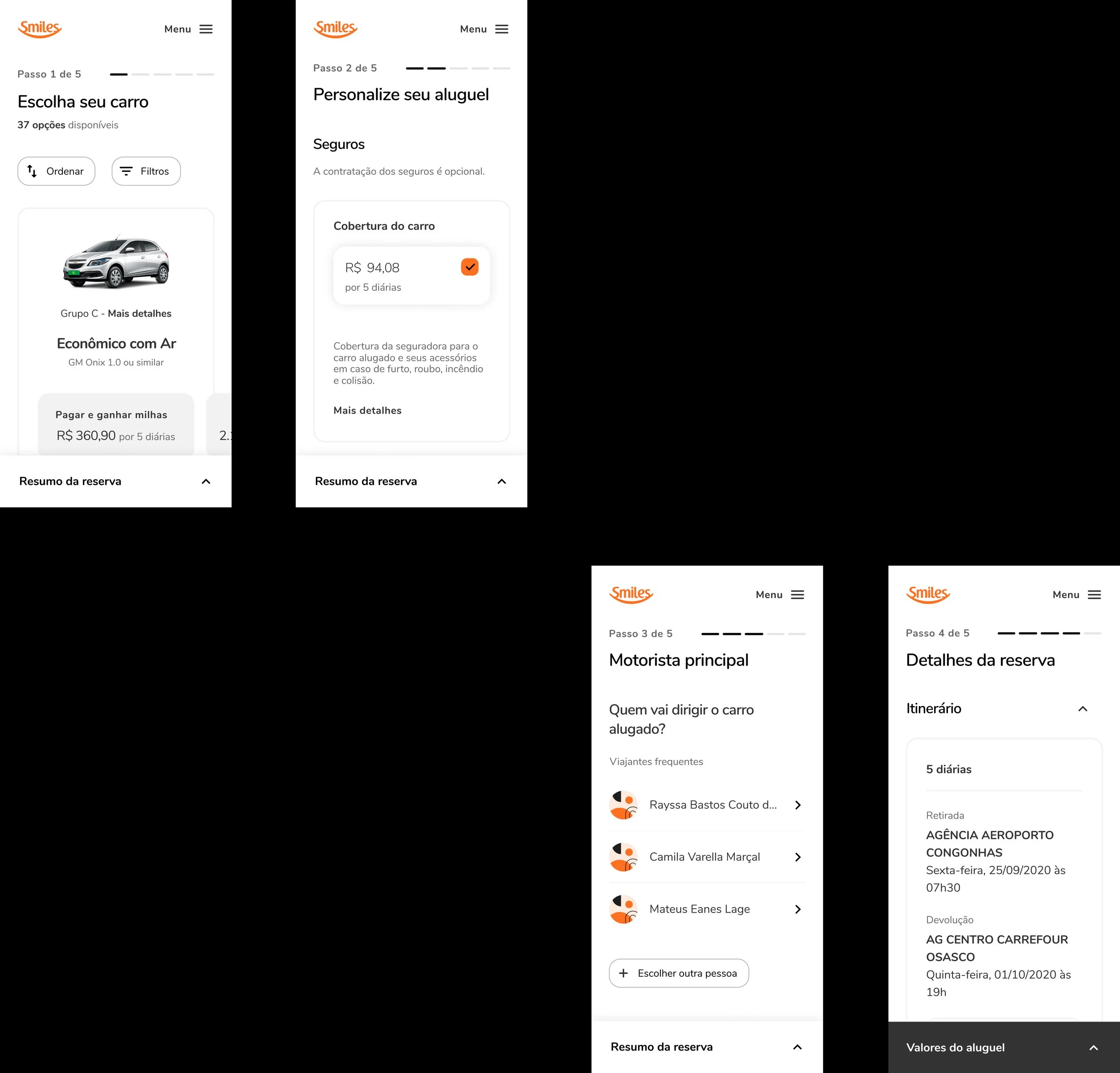 Smiles Fidelidade is a company that manages Gol Linhas Aéreas' frequent flyer program. In 2020 we helped the company to reimagine its car rental platform, from looking for the vehicle to staying at a destination.