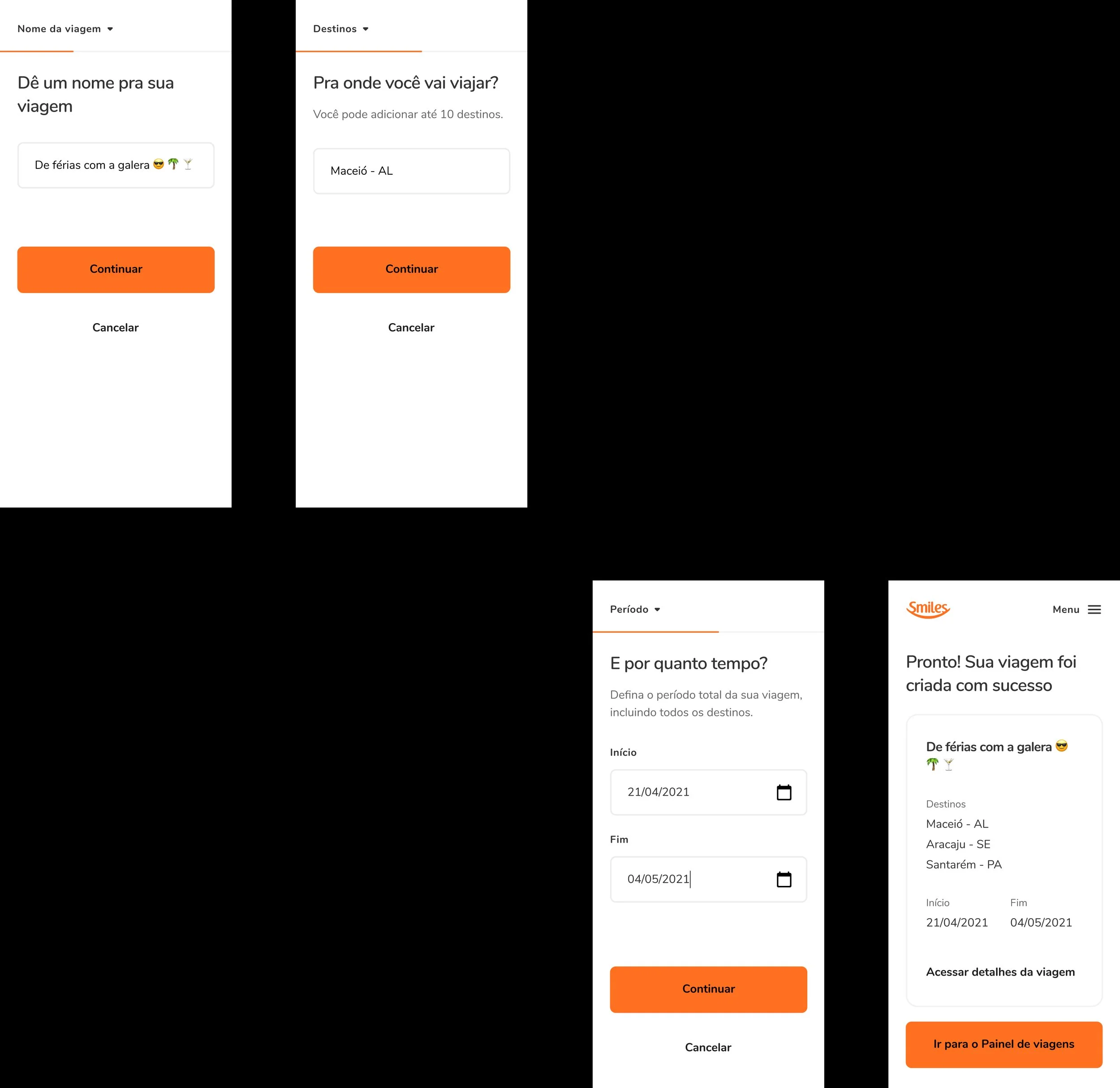 Creating a trip through the Panel is extremely easy and fast (and it really is). Here you can give a fun name to your trip, leaving it with your face. In addition, you can still choose up to 10 destinations that you will want to visit, all in 3 small steps. Cool, right?